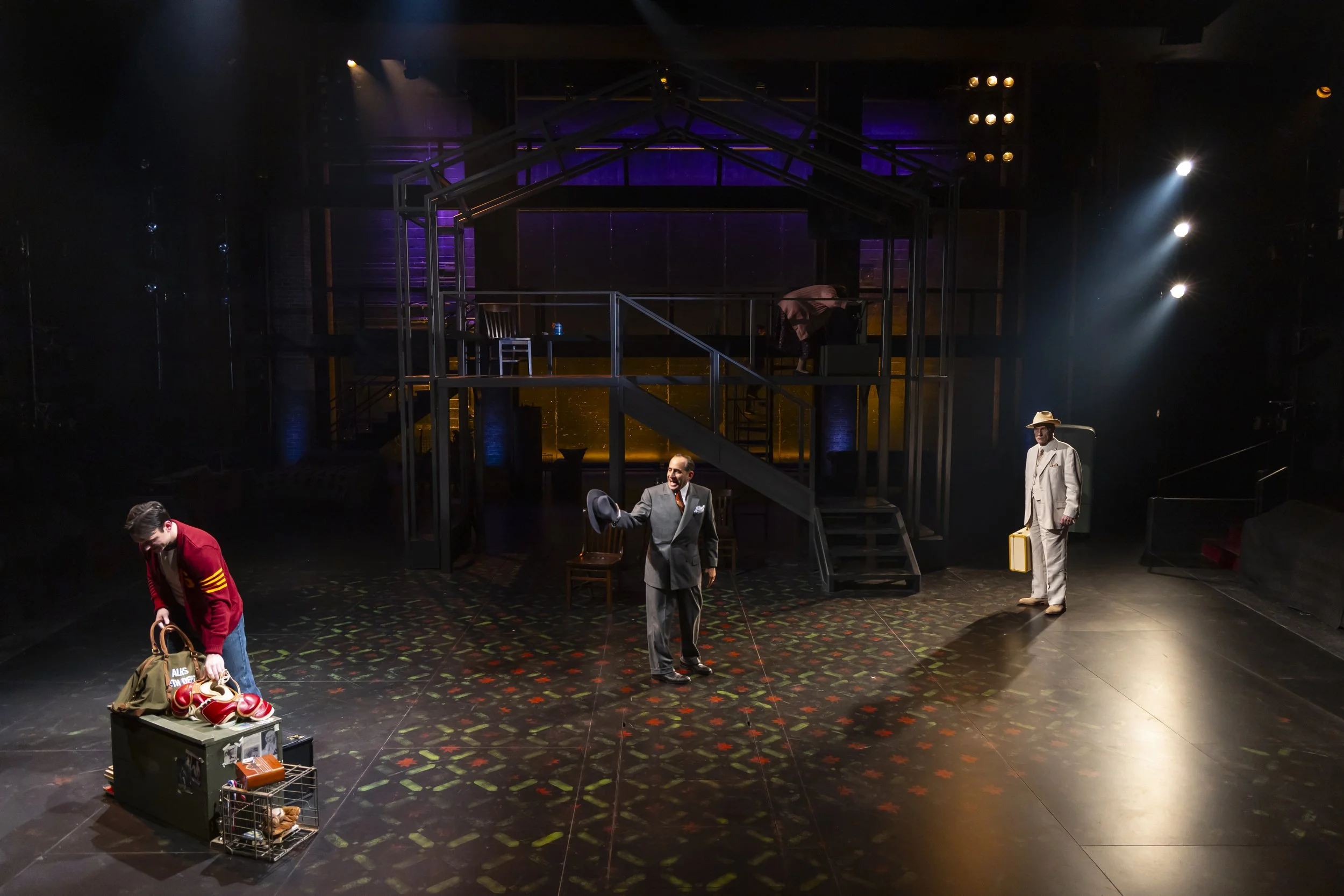 Biff (Samuel H. Levine), Willy (Peter Jacobson), Happy (Max Katz) in Death of a Salesman, directed by Melia Bensussen, Hartford Stage; photo by T. Charles Erickson