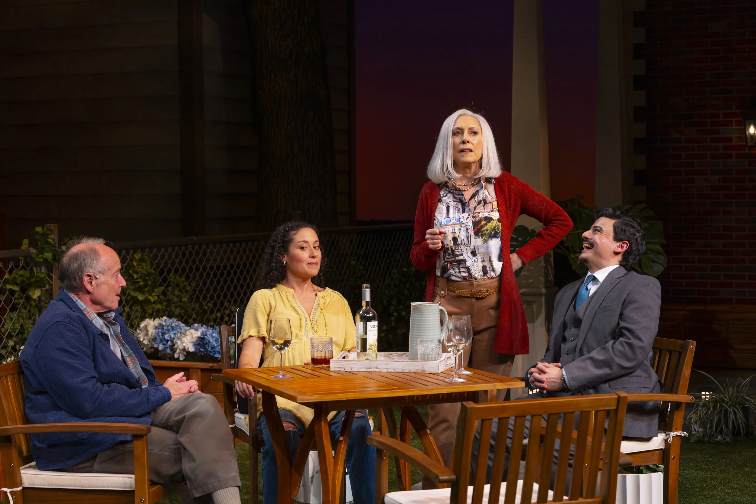 Frank (Greg Wood), Tania (Alina Collins Maldonado), Virginia (Judith Lightfoot Clarke), Pablo (Bradley Tejeda) in Native Gardens, Hartford Stage; photo by T. Charles Erickson